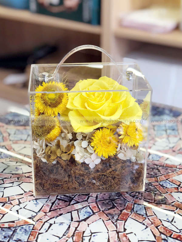 - Thành phần: 1 hoa hồng vàng vĩnh cửu