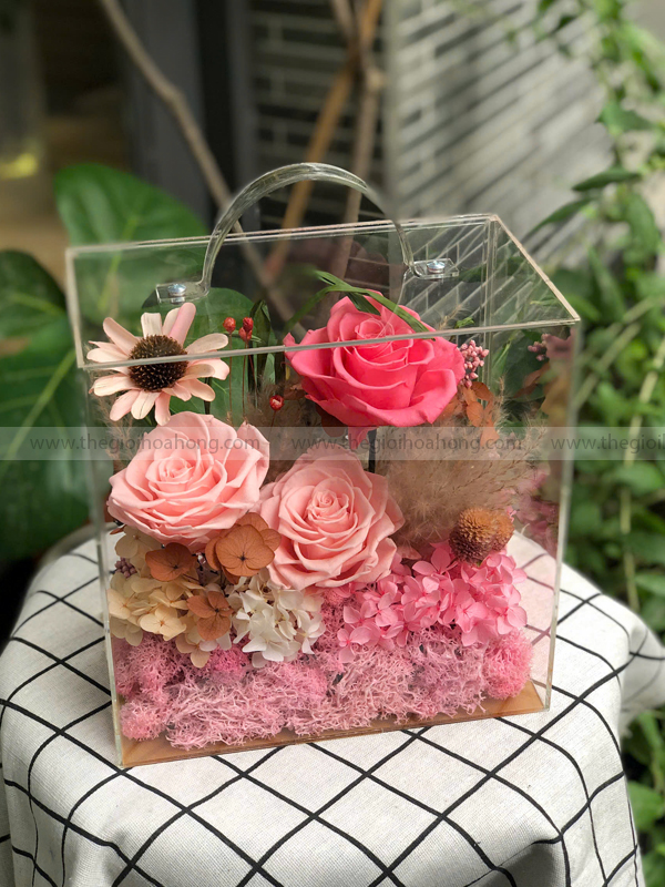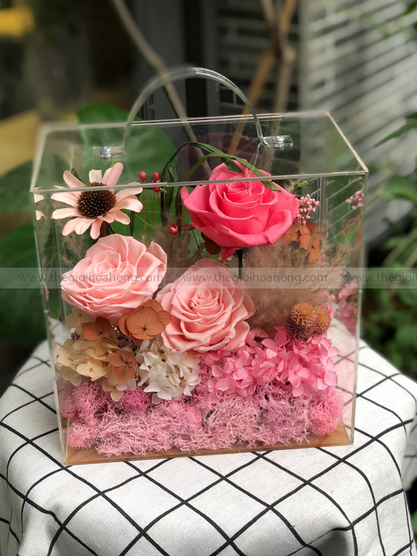 - 2 bông hoa hồng phấn vĩnh cửu – dịu dàng, ngọt ngào như viên kẹo hồng.