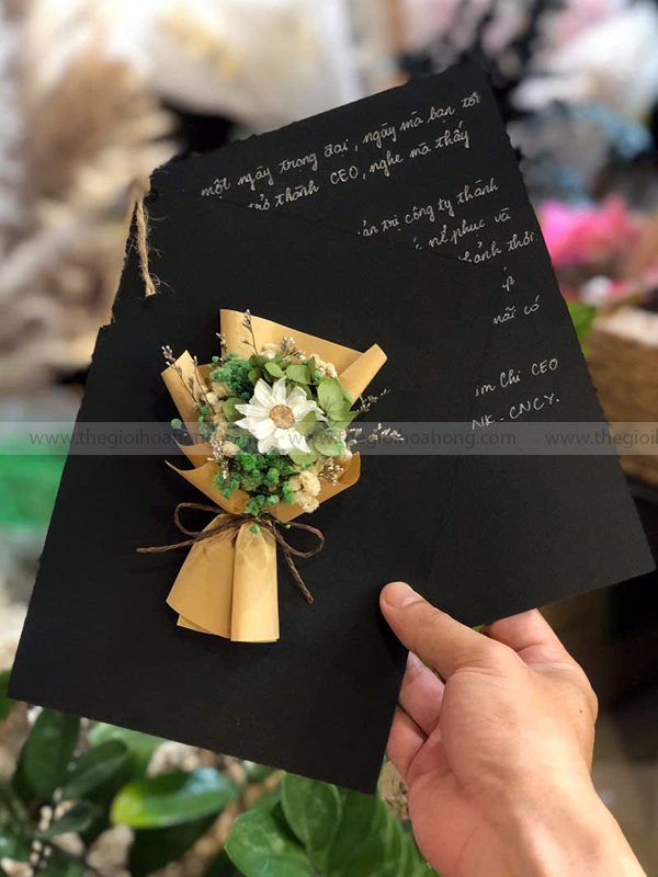 - Chất liệu: Giấy mỹ thuật đen + hoa khô thật