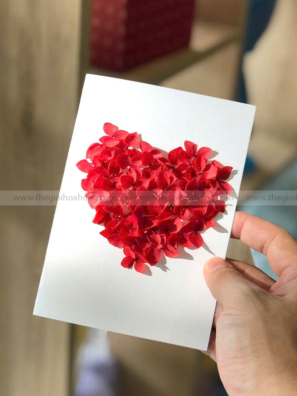 Thiệp Hoa Cẩm Tú Cầu Đỏ Hình Trái Tim là món quà nhỏ nhưng chứa đựng ý nghĩa lớn, được thiết kế thủ công với từng cánh hoa cẩm tú cầu đỏ khô tỉ mỉ kết thành hình trái tim. Màu đỏ tượng trưng cho tình yêu mãnh liệt, sự trân trọng và gắn kết bền chặt, khiến tấm thiệp trở thành điểm nhấn đặc biệt cho món quà của bạn.